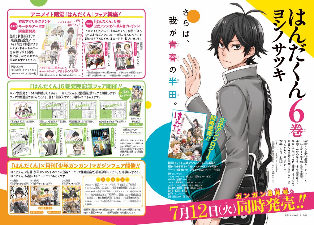 7月12日発売の「はんだくん」最新6巻は、ヨシノ先生の描き下ろしアクリルスタンドが付いたアニメイト限定版も発売されます。只今予約受付中!詳しくはこちらでチェックを!☟