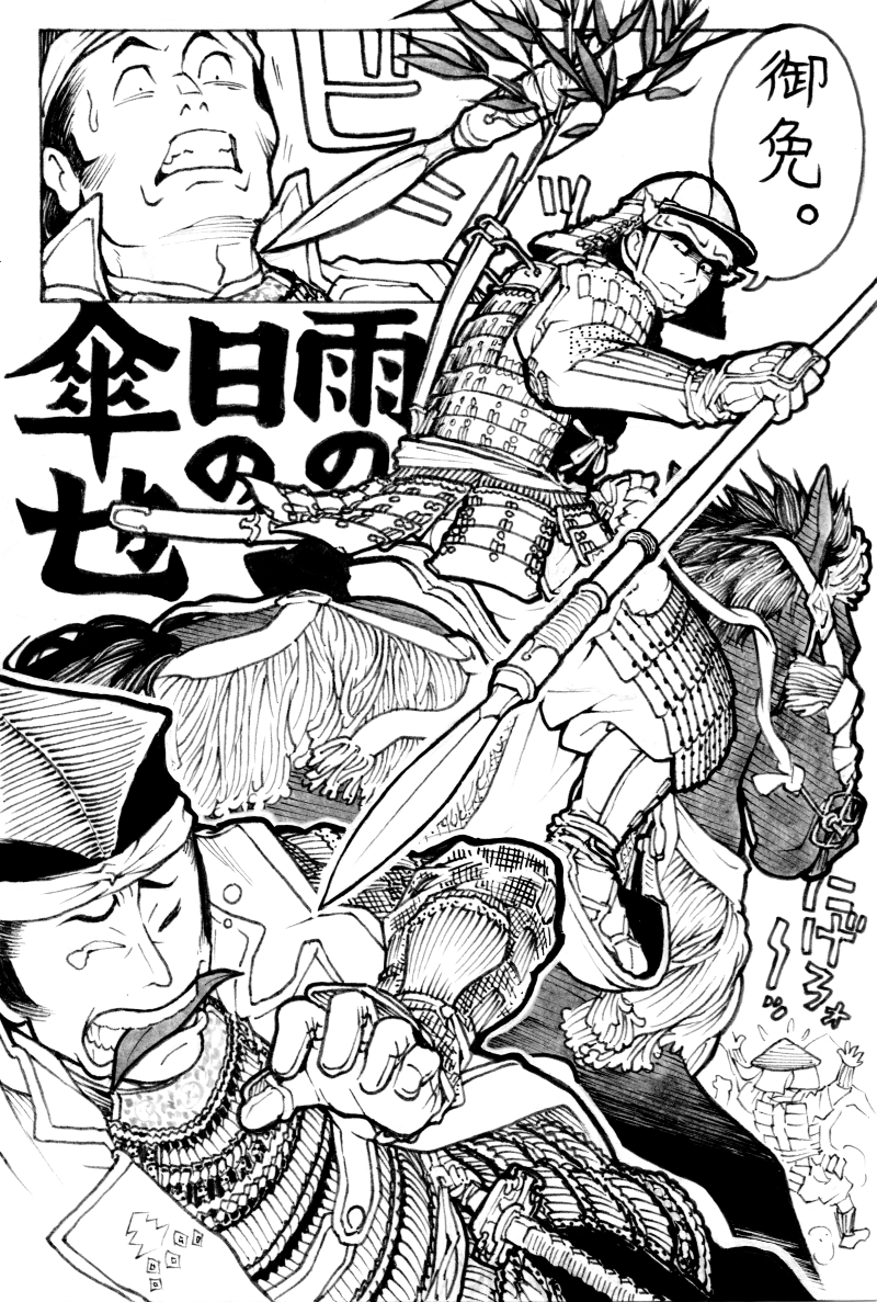 【可児才蔵】小牧長久手の陣で敗れた大将の豊臣秀次は、徒歩で退却するほどの混乱ぶりであった。そこを馬で通っていく才蔵を見るや「その馬を貸せ」と命じたところ、才蔵は「雨の日の傘でござる」と言い捨て逃げていった、という逸話が『小牧陣始末記』に紹介されている。
