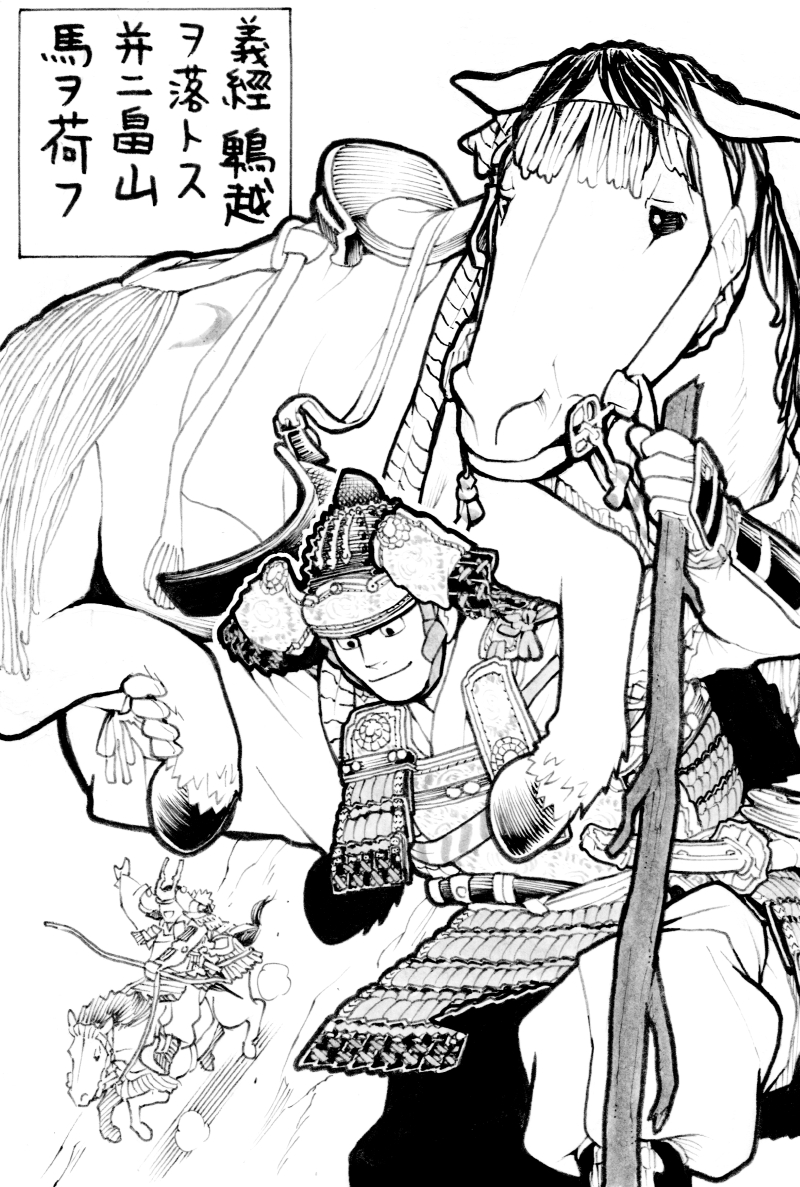 ※このころの武士は、特殊な鍛練を積んでおり、心身ともに常人の範疇をはずれているので、良い子は絶対に馬で崖を駆け下りたり、馬を背負ってみようとしてはいけません、念のため。