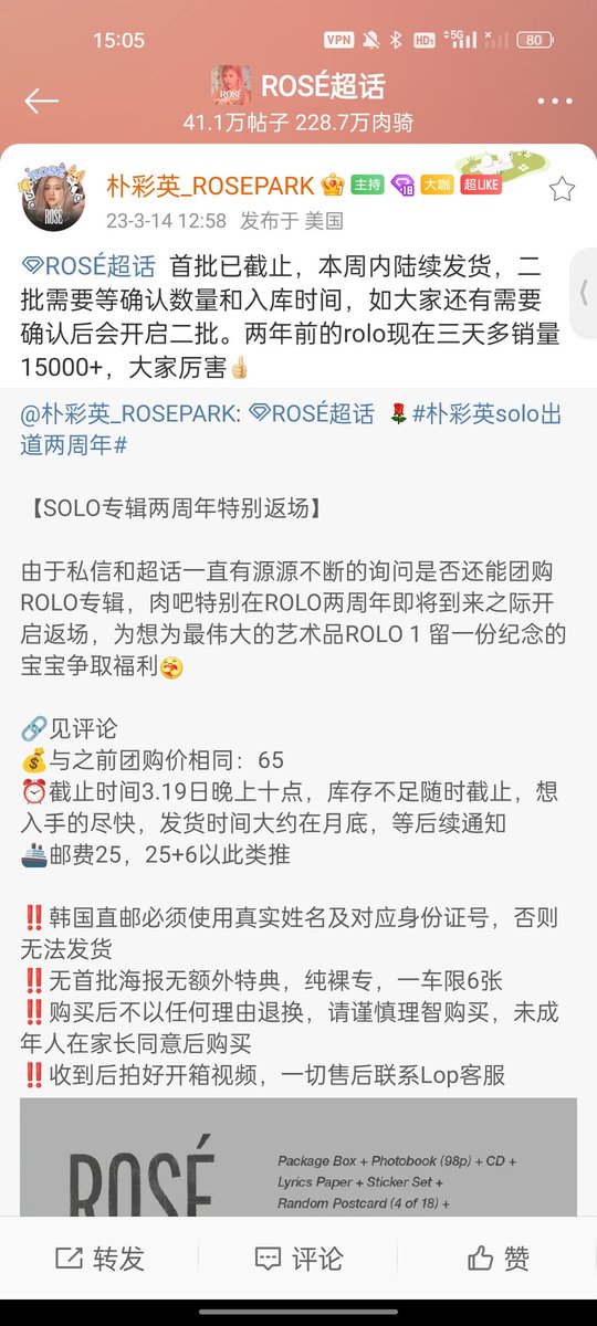 On March 10, in order to celebrate the second anniversary of - R-, @RoseChinabar launched the group purchase link, which reached more than 15000 copies today. The first batch of inventory has been sold out.Now this link is off the shelf