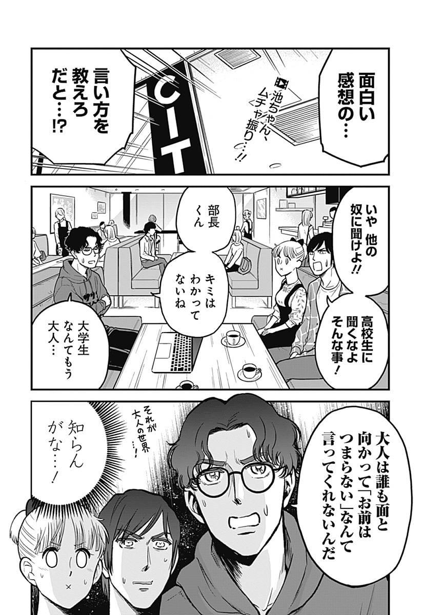 読者の罪悪感を担保するためというよりは、邦キチが天然ですっとぼけて変な映画の話をする方がギャグ漫画として面白いからですかね。邦キチはギャグ漫画なので。