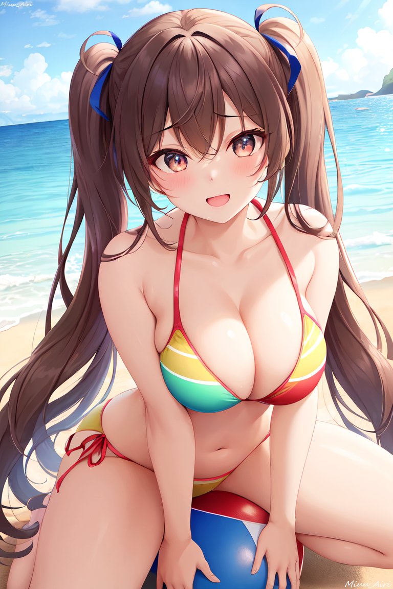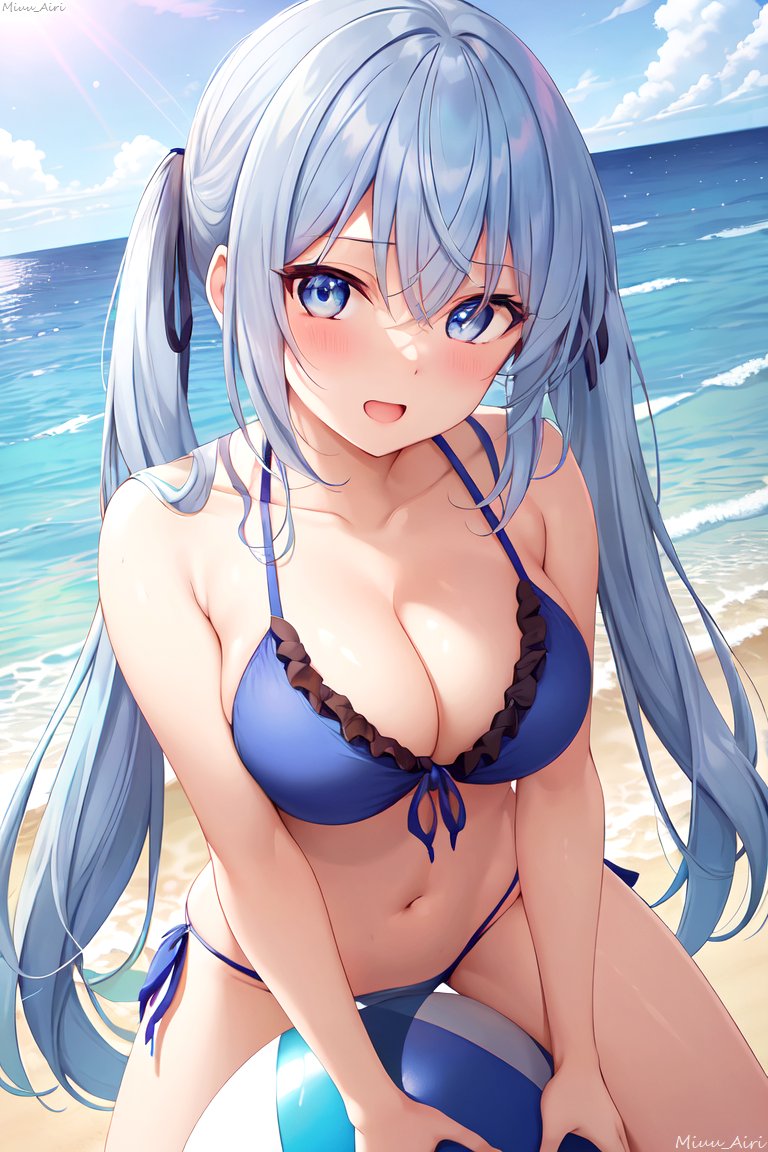 ビーチボールで遊ぶ青髪のお姉さん<水着>