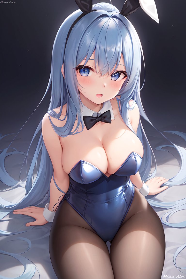 一休みしている青髪のお姉さん(バニーガール)