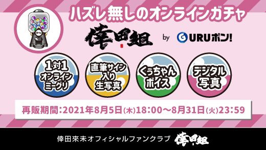 ※売切後は「くぅちゃんボイス賞」「デジタル写真3枚セット」のみのGURUポン!の販売を予定しています。