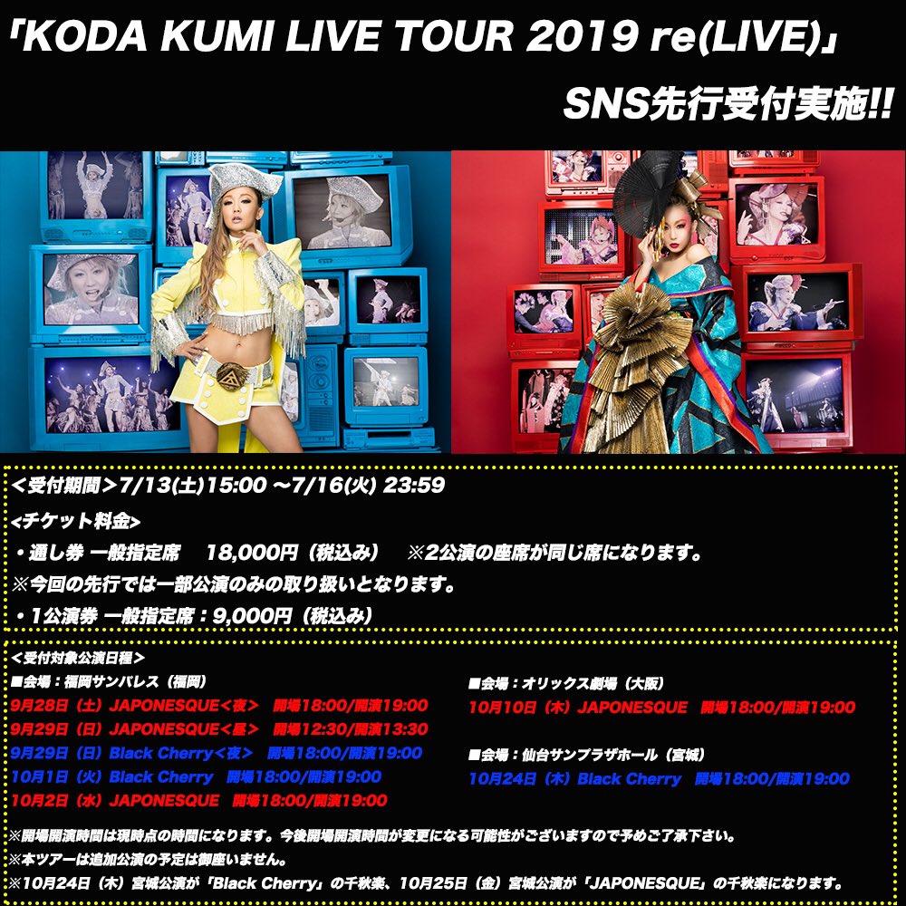 「KODA KUMI LIVE TOUR 2019 re(LIVE)」SNSチケット先行受付実施👏🏻😝