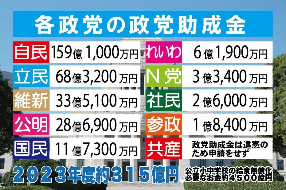 これだけのお金が、湯水のように各政党に流れている。