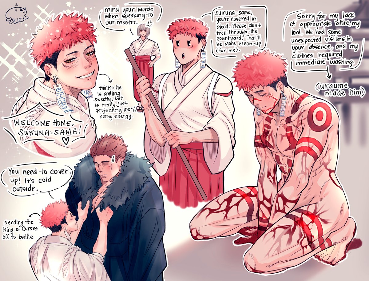 [ 宿虎 | sukuita ] shrinekeeper au local village boy taken in by King of Curses, becomes his wife - more at 10