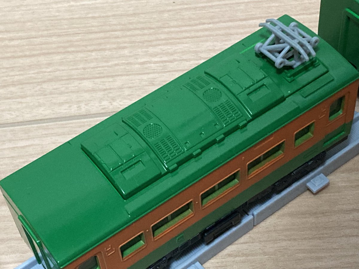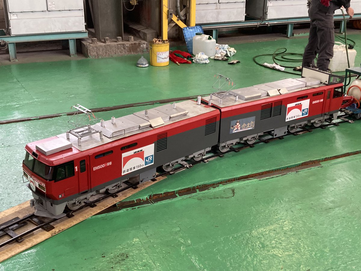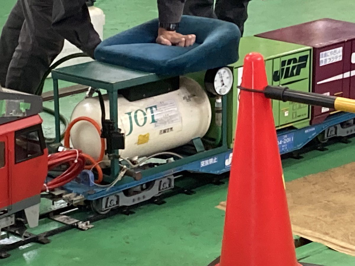 走る団臨の車内でサックラを冷やすために走るEF81のプラレール(過度な負荷によりピニオンギヤが割れた)