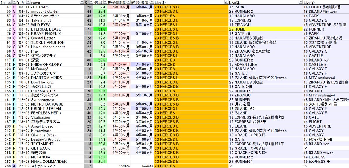 【更新】 #水樹奈々 LIVE HOME 2022に合わせて、「最近歌われていない曲Ranking」「お気に入り曲分析&1度しか歌われていない曲list」「ダンス・振り付け・タオル曲分析」を更新しました(※リンク先中段に特設ページを設置してます、開催中に何度か更新予定です) pgnm7.wp.xdomain.jp #live_home