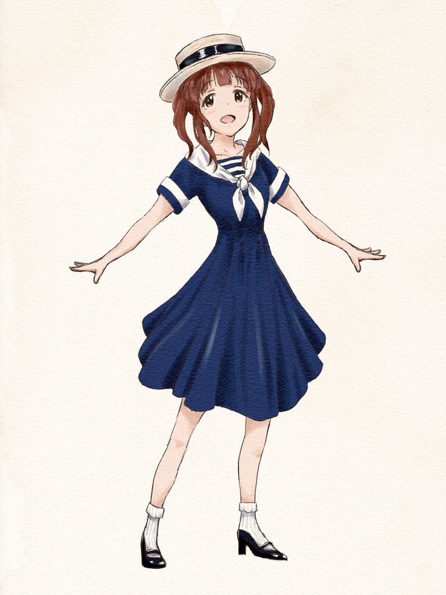 私はボーターハットが好きでよく被っているのだけど、きっと智絵里ちゃんも似合うだろな〜っていうラクガキ🍀