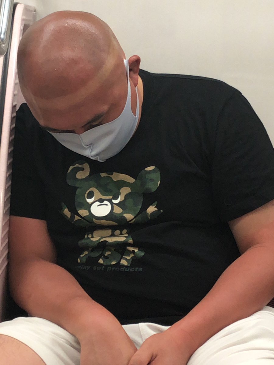 飛行機の離陸前。隣の人が「隣に鬼越トマホーク座ってるけど予想以上に顔デカイ」って友達にLINEしてる。ヤバ