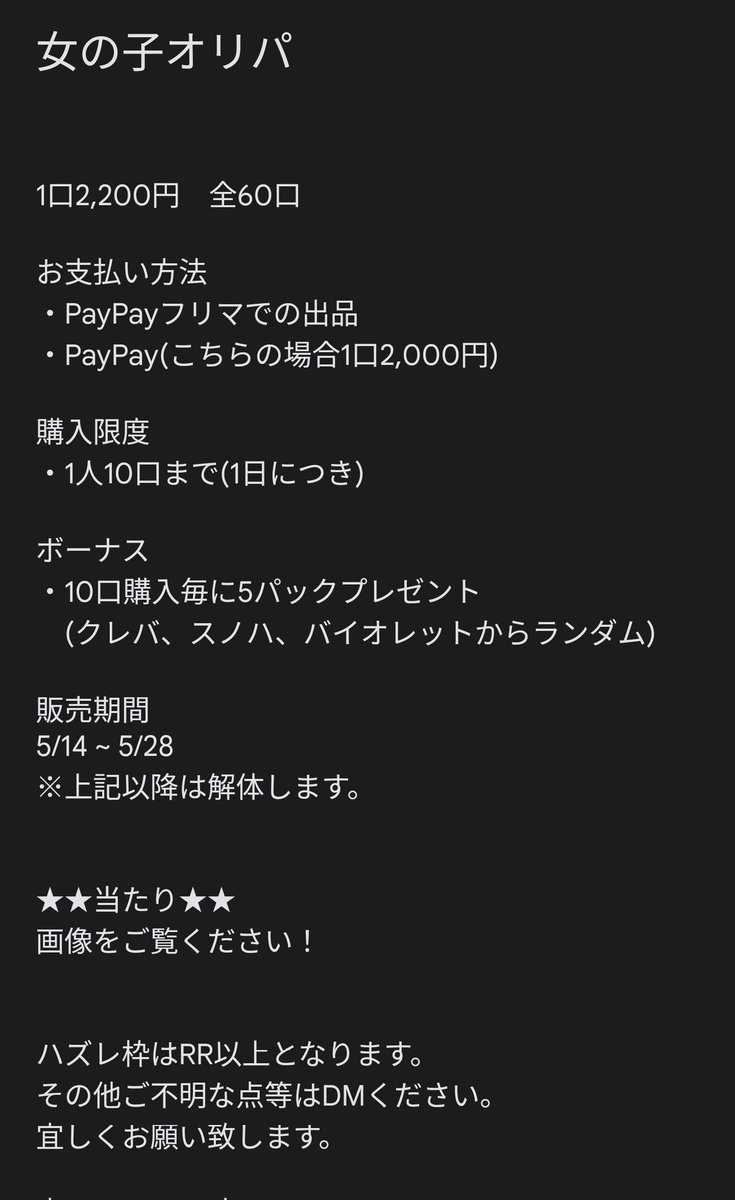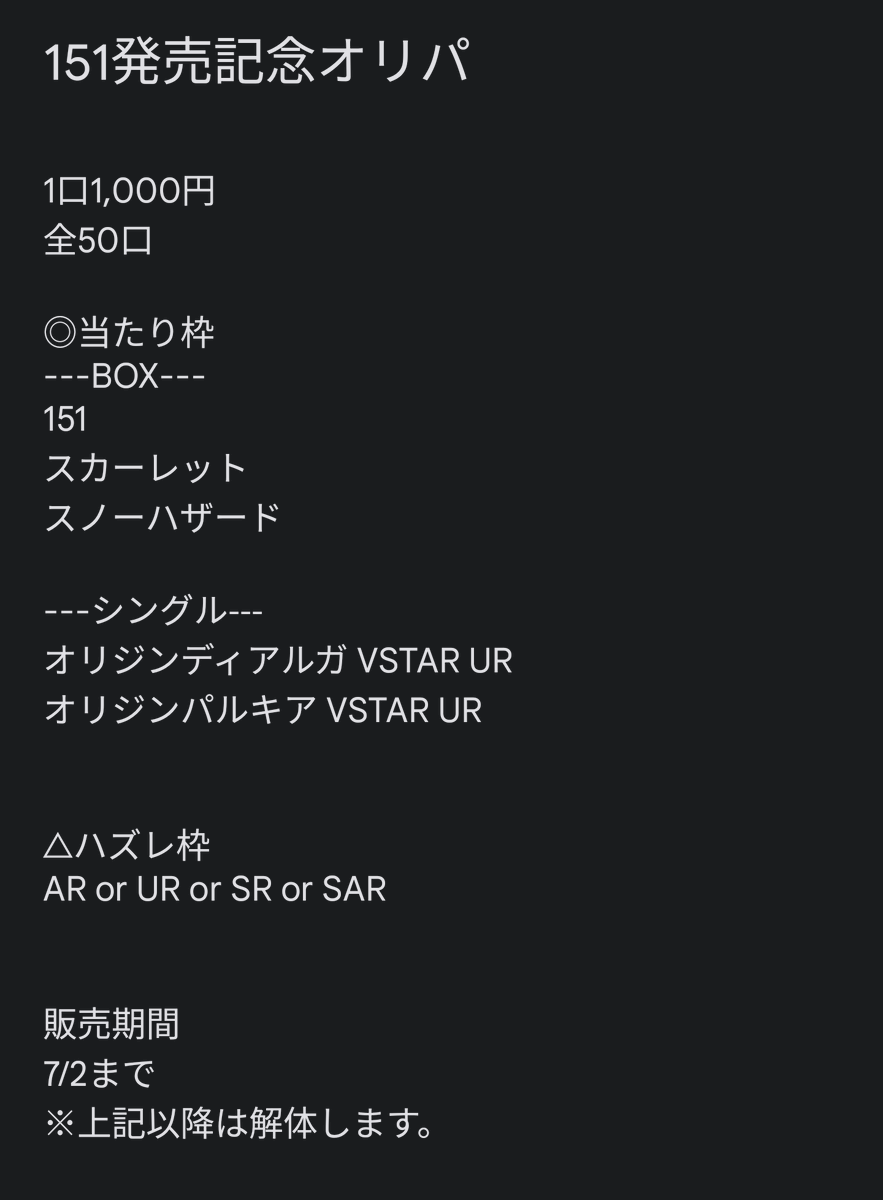 GW5,000円オリパを販売します!