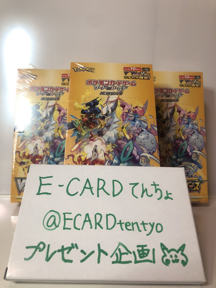 お待たせしました!てんちょです。 フォロワー0️⃣人から始めるプレゼント企画の記念すべき第1弾🎁 Vスターユニバース(シュリンク付き) 3名様に1ボックスずつ 参加方法はフォロー&リツイートのみ 応募期間5/1〜5/7 #ポケモンカード #プレゼント企画 #ポケカ #オリパ