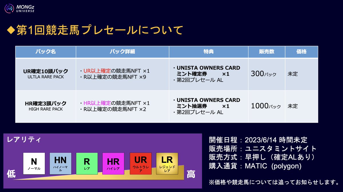 【ユニスタ1stセール開催記念】にて、【馬連】を当てた方全員に500MATIC山分けでプレゼントします🎁