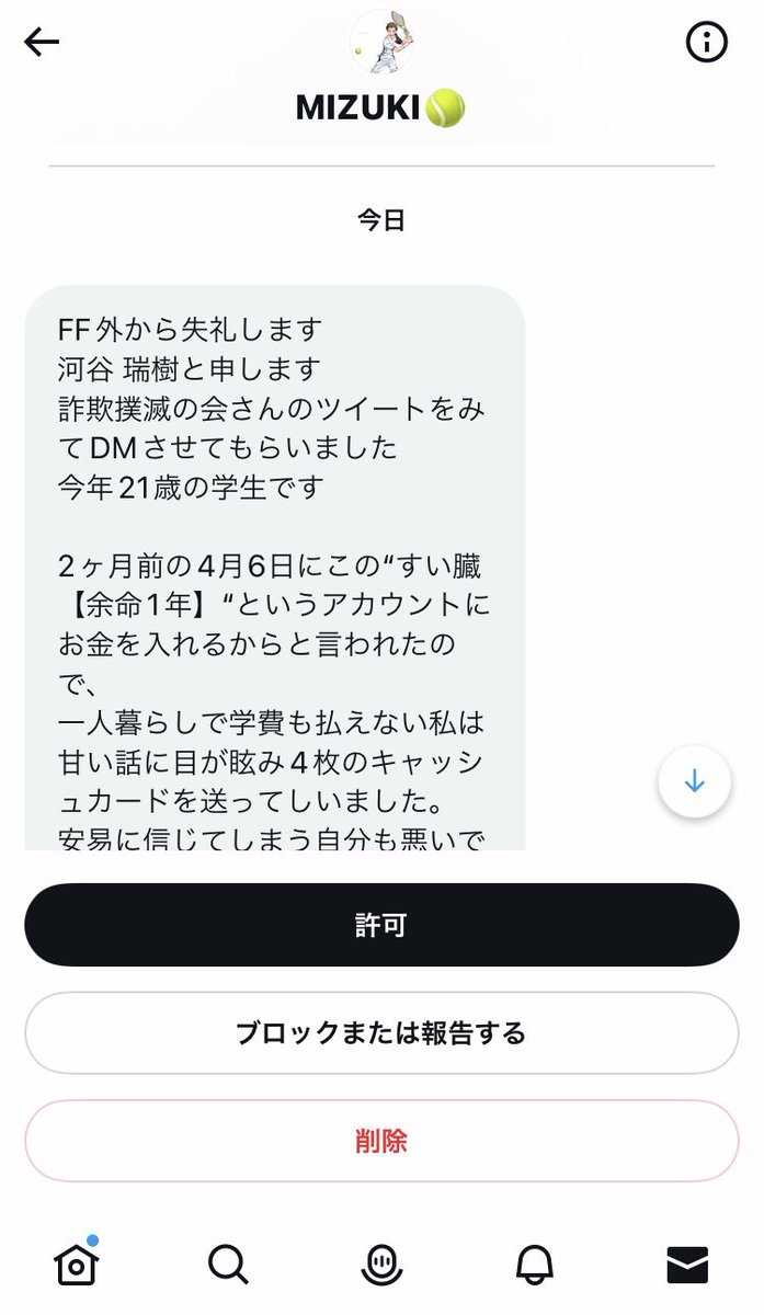 詐欺垢を通報してるスクショ動画を送ってくれたら1万円謝礼する