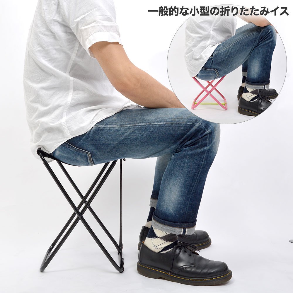 リュックの背面パッドを開くだけで、イスが「パッ」とでてきて座れます。