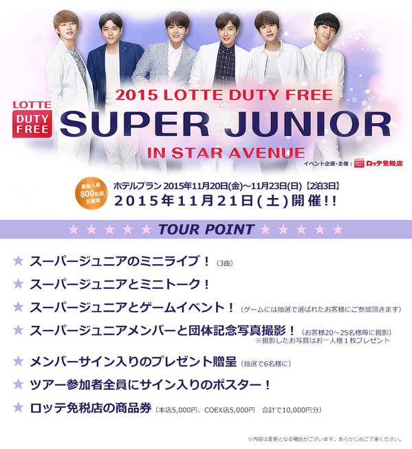 「2015 LOTTE DUTY FREE SUPER JUNIOR IN STAR AVENUE」追加ツアーポイント決定。サイン入りポスターを、メンバーから直接手渡し!!詳細⇒suntravelweb.com/products/detai… …