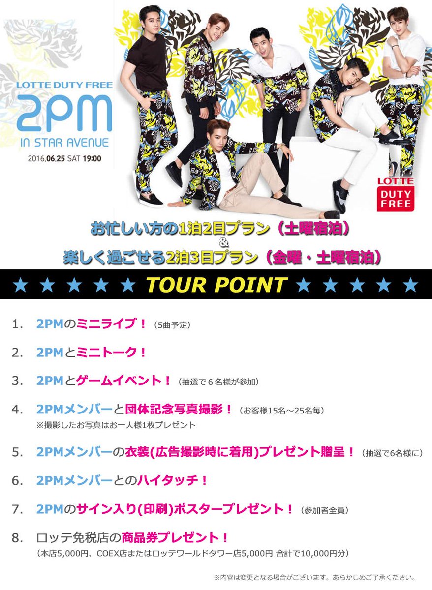 【日本公式】「2016 LOTTE DUTY FREE 2PM IN STAR AVENUE」2PMからのメッセージ動画が到着いたしました!皆さんご覧ください!こちらから⇒suntravelweb.com/products/detai…