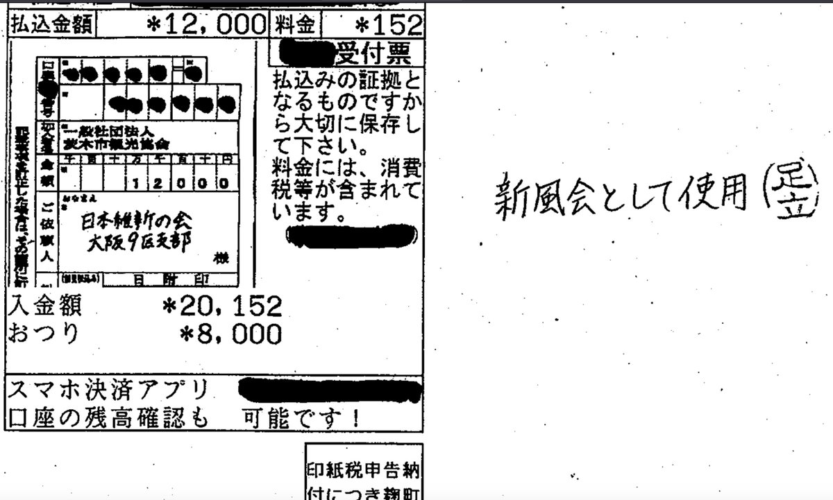 維新の会支部で振り込んだのを、政治資金管理団体(新風会)につけてる