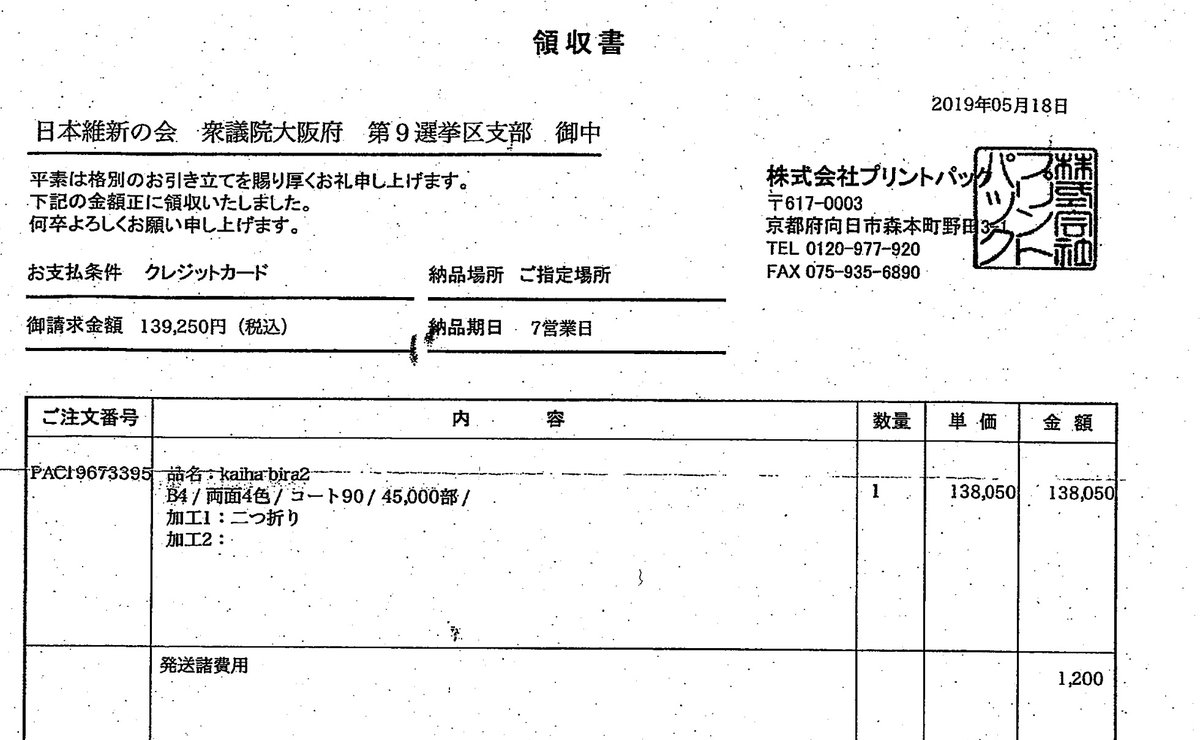 領収書、旬な話題のやつあったわ!