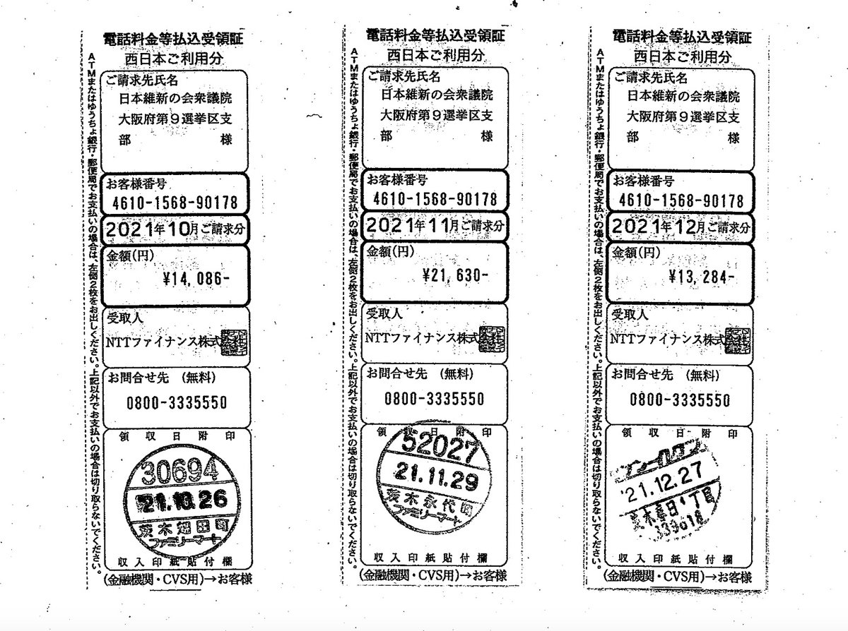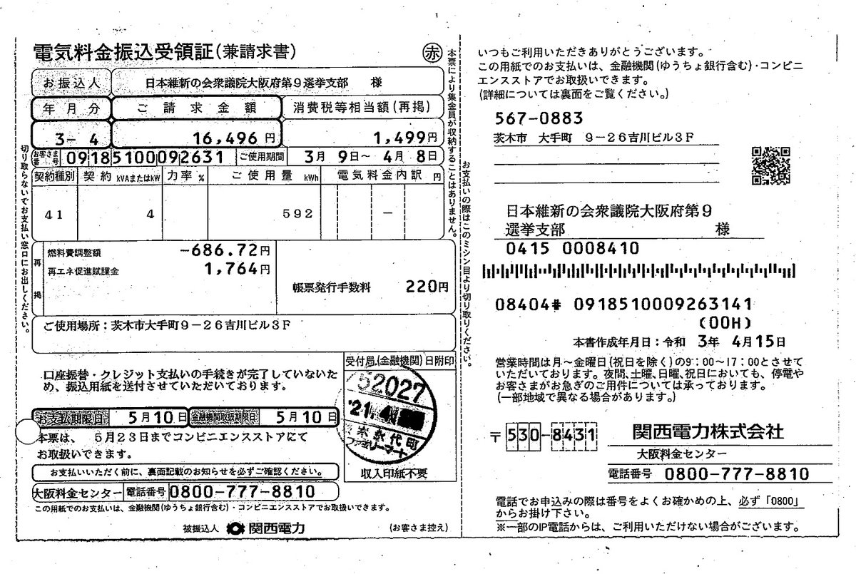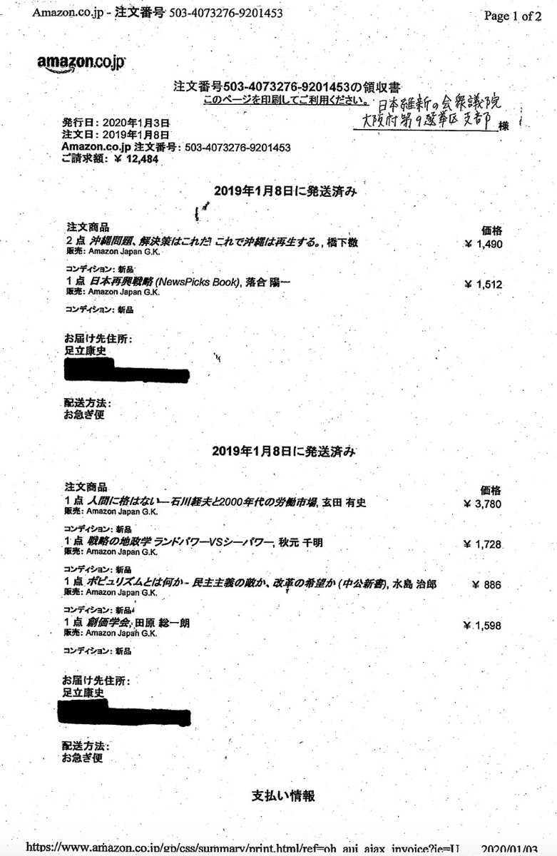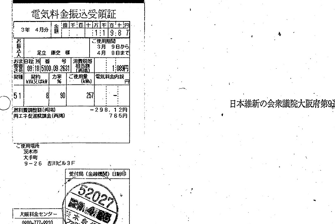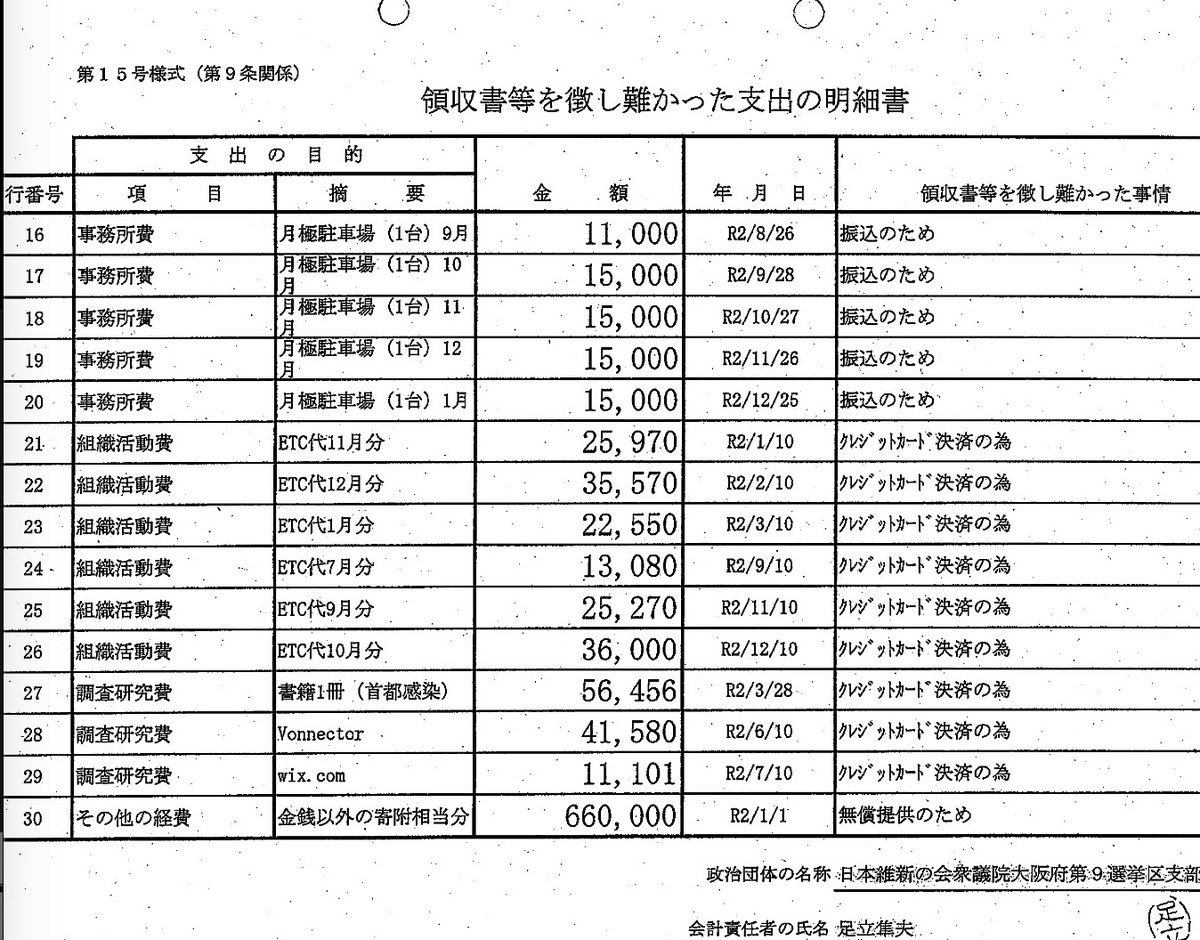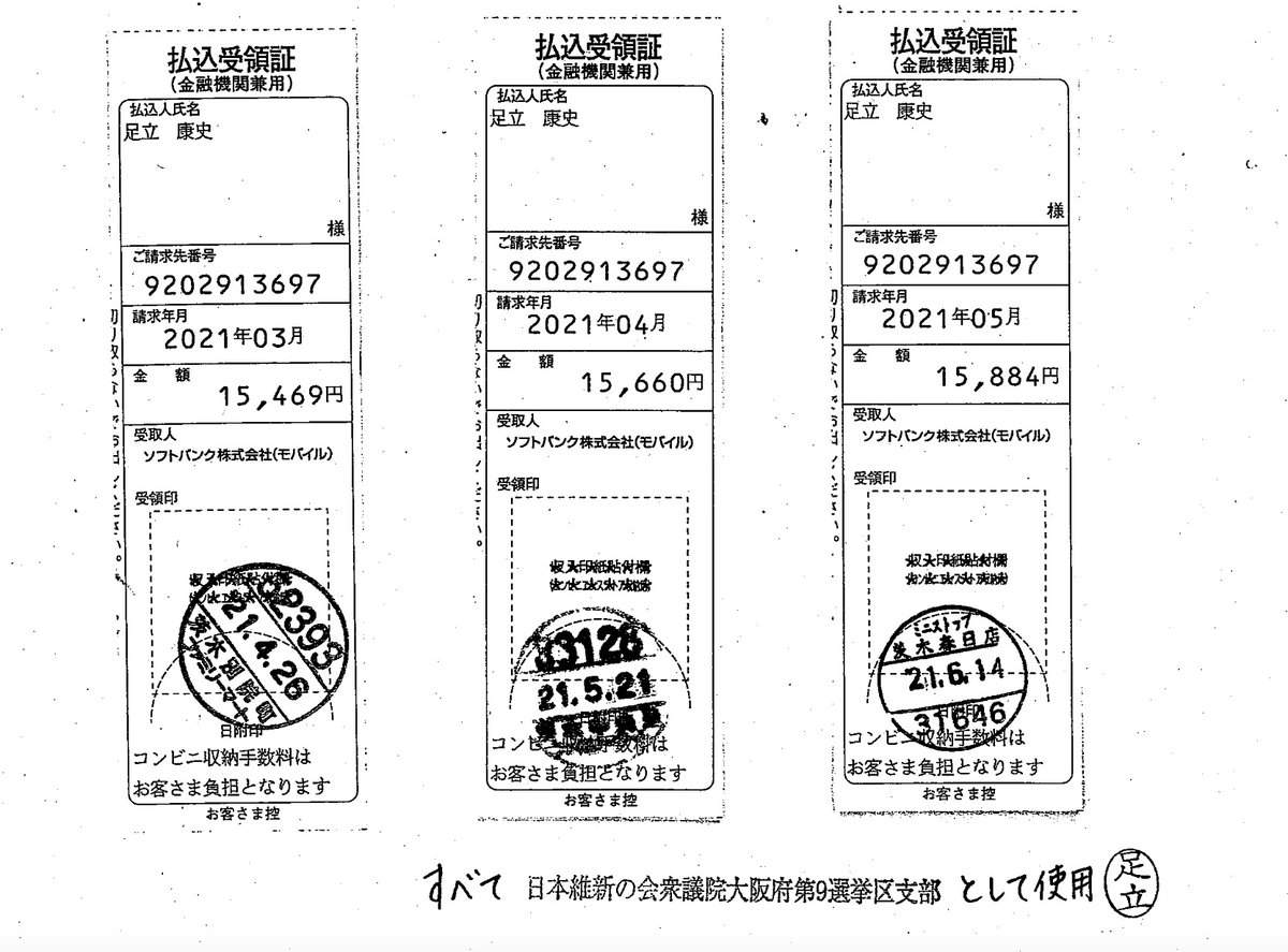 日本維新の会支部と、足立議員と請求先が分かれてる理由、わかる人いたら教えて!