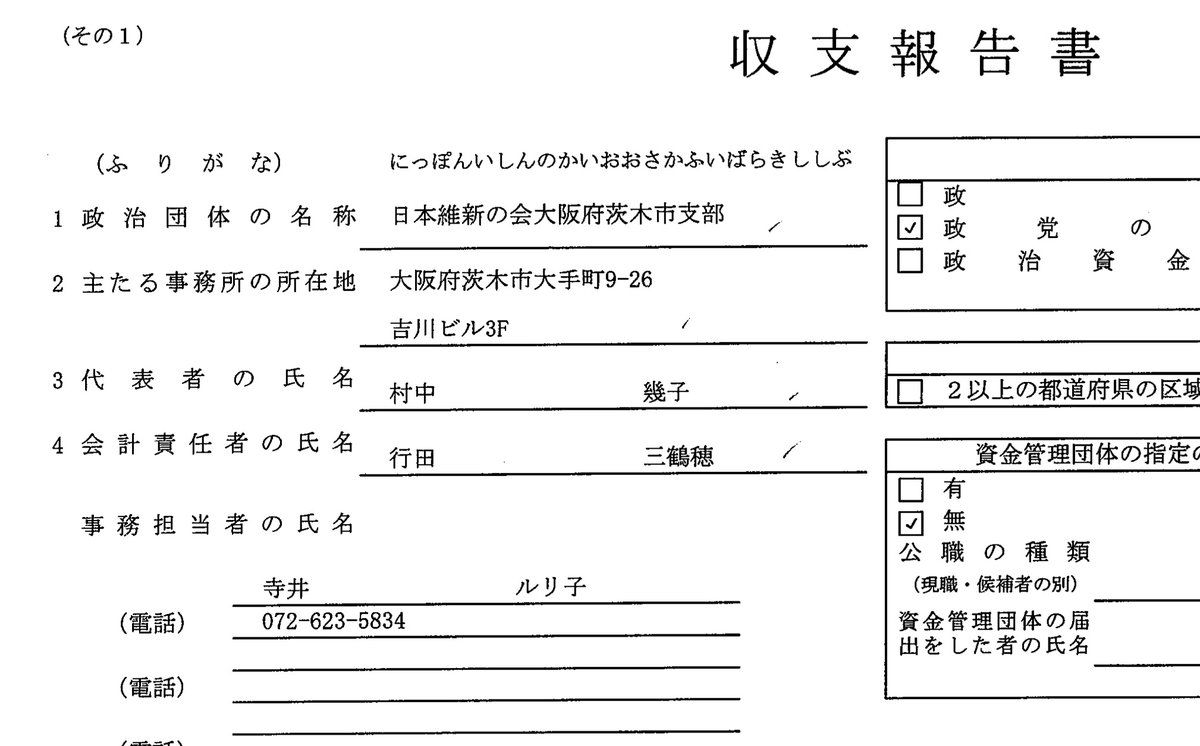 なんで同じビルのフロアに4つ目の政治団体持って、代表者を他人にしてるのかしら?