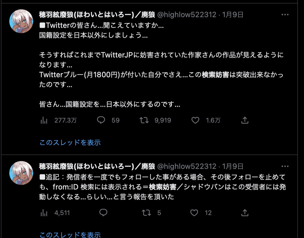 【新着】Twitterジャパン 特定ユーザー対象の新たな「検索妨害」が存在か 「受け手ターゲット」でシャドウバンより巧妙なSNSジャミング