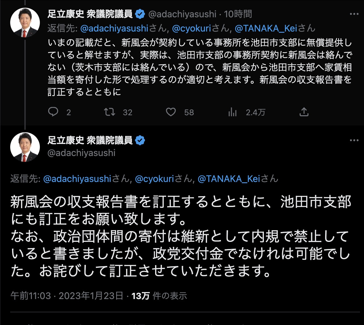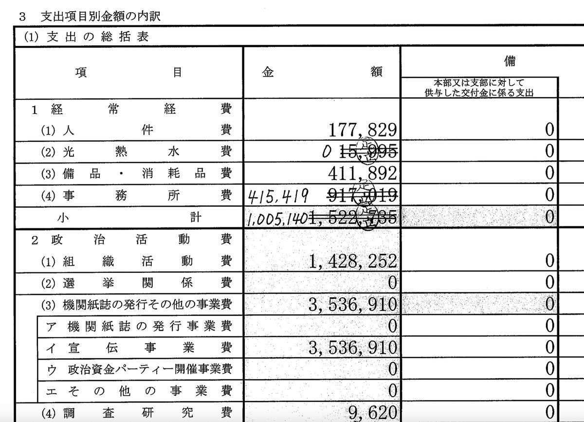 足立議員の団体、盛大に政治資金収支報告書を修正してるわね!