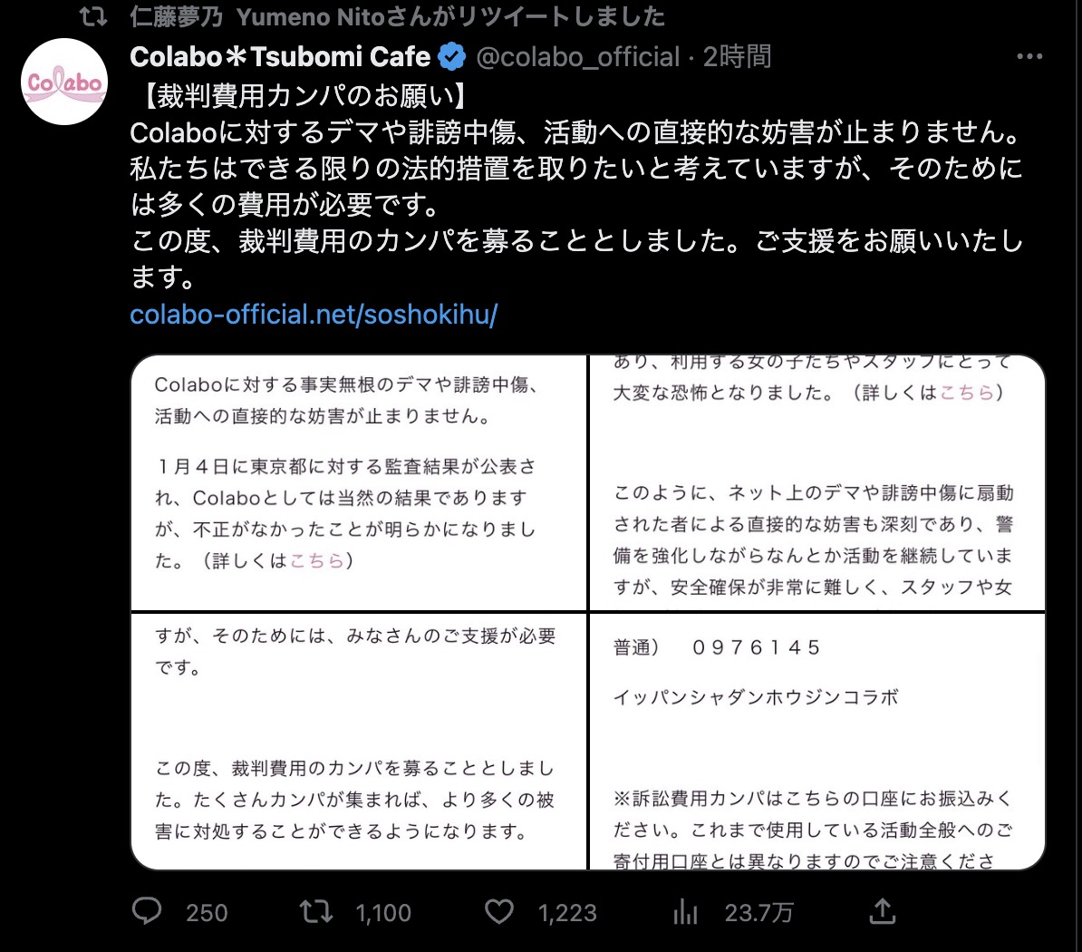 【ご報告】Colaboと弁護団が、先程の報告会で、エコーニュースを被告に、2月22付で民事訴訟を提起した旨を発表しました