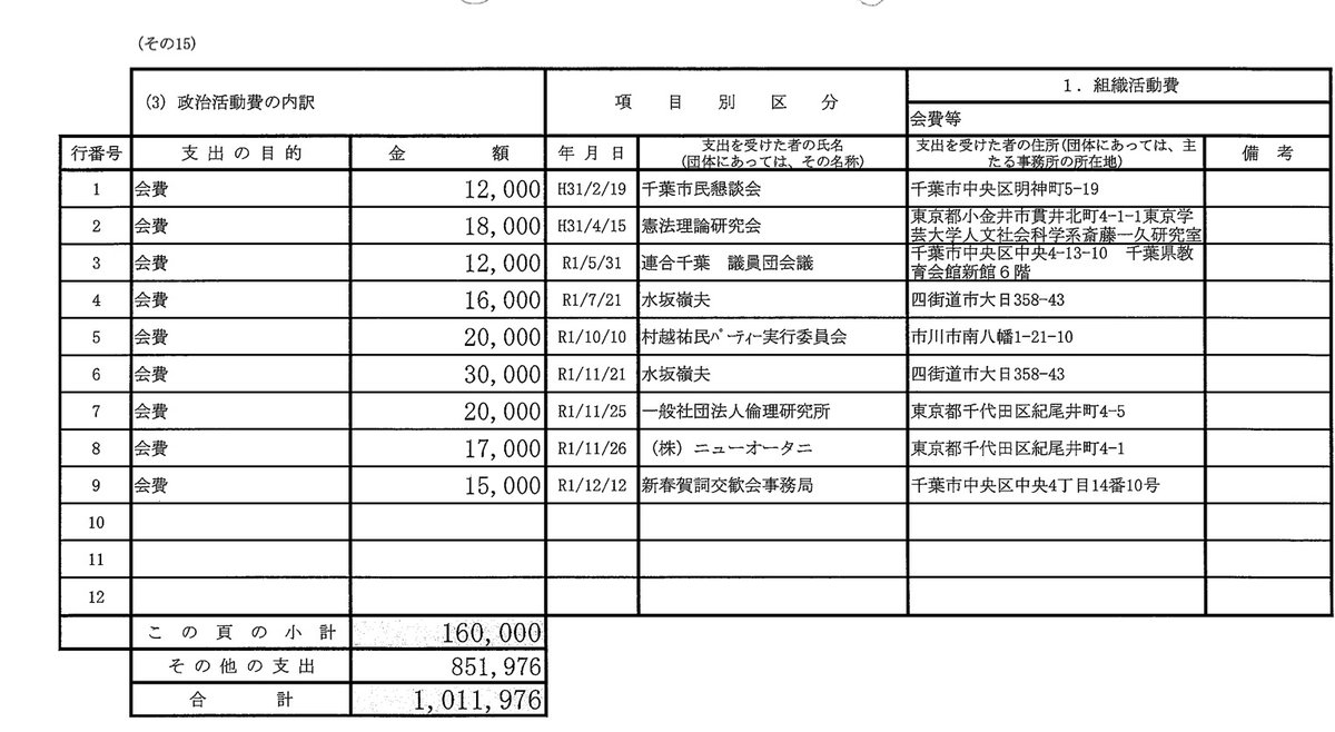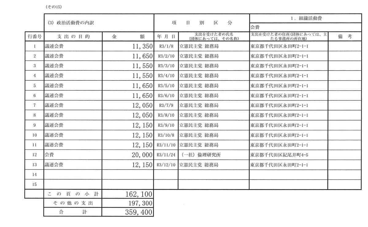 【新着】立憲 小西洋之参議院議員、政治資金で一般社団法人「倫理研究所」に10万円・・echo-news.red/Japan/Hiroyuki… ・選挙区内個人へ謎の会費支払い、りそな銀行に「事務所費」など奇妙な支出多数