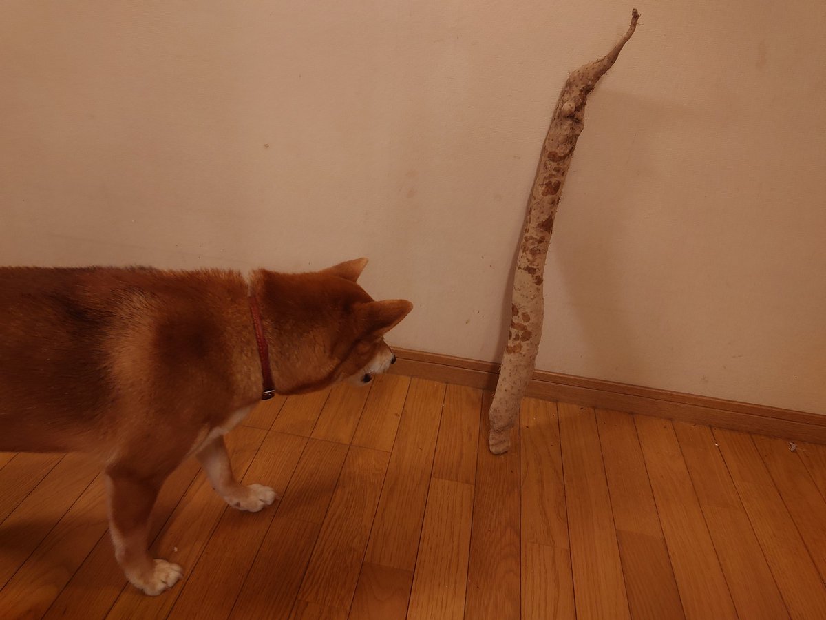 山芋を挑発する犬