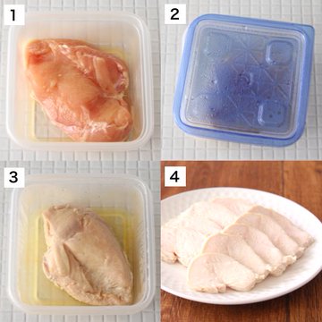 材料は菜の花、鶏胸肉、水、酒、塩だけ。