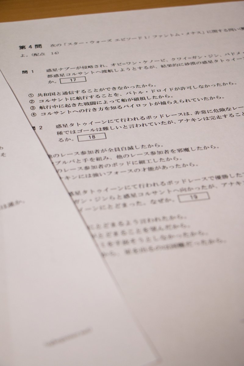 スターウォーズ未見の友人に、Blu-ray貸して、ちゃんと見たか確認するためにセンター試験風のスターウォーズ定着度テスト作りました。