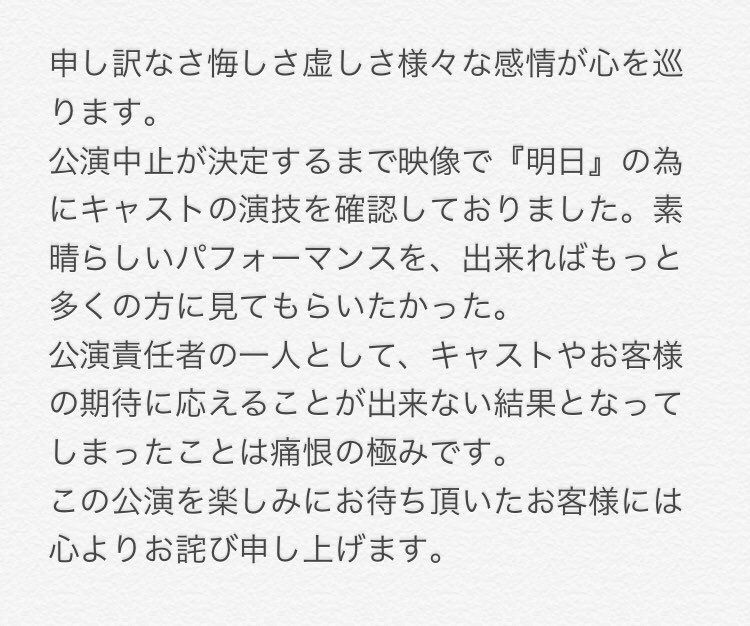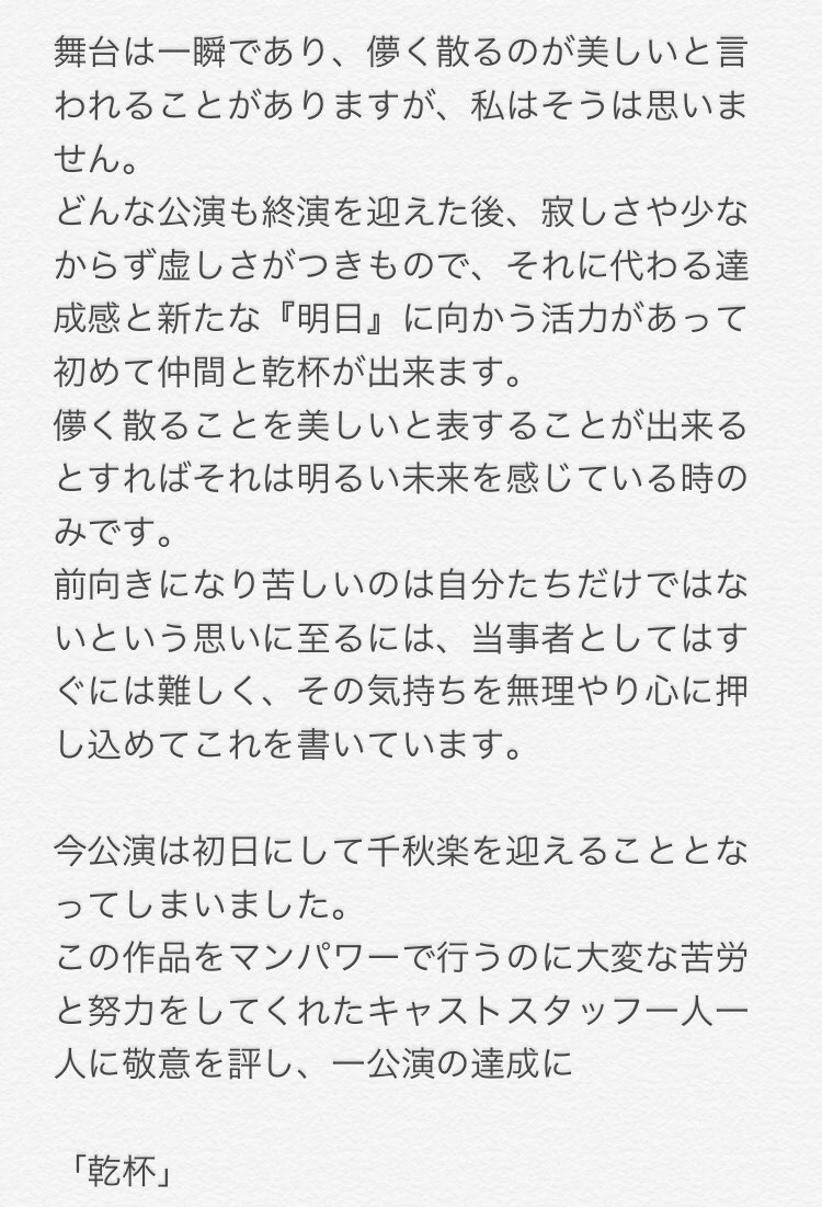 また舞台でお逢い出来る日を楽しみにしています。