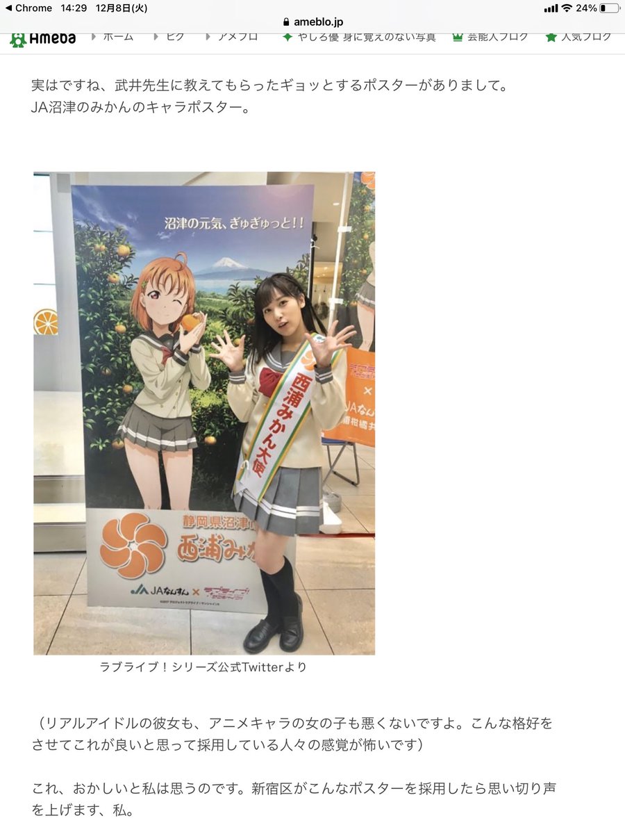 なんとラブライブのミカンポスターにいちゃもんつけてた人と同一人物なんだよなぁ……