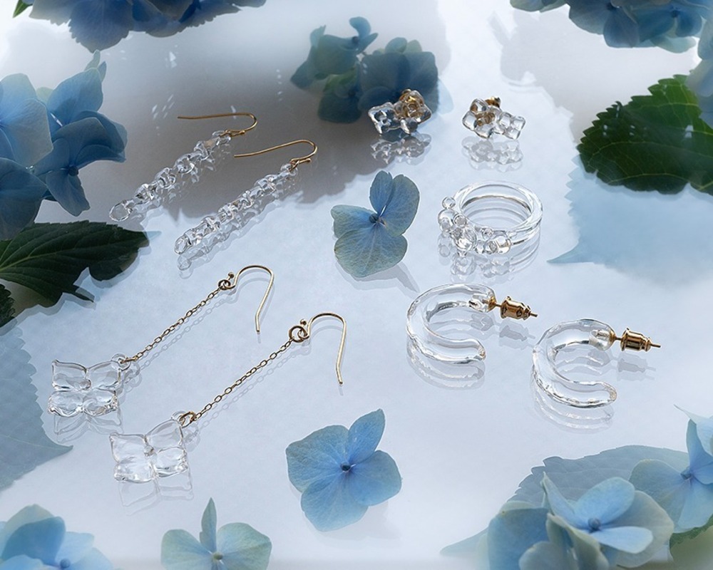 ガラスメーカー「ハリオ」“アジサイ”アクセサリー、風に揺らめく透明ガラスピアス&イヤリング - fashion-press.net/news/103568