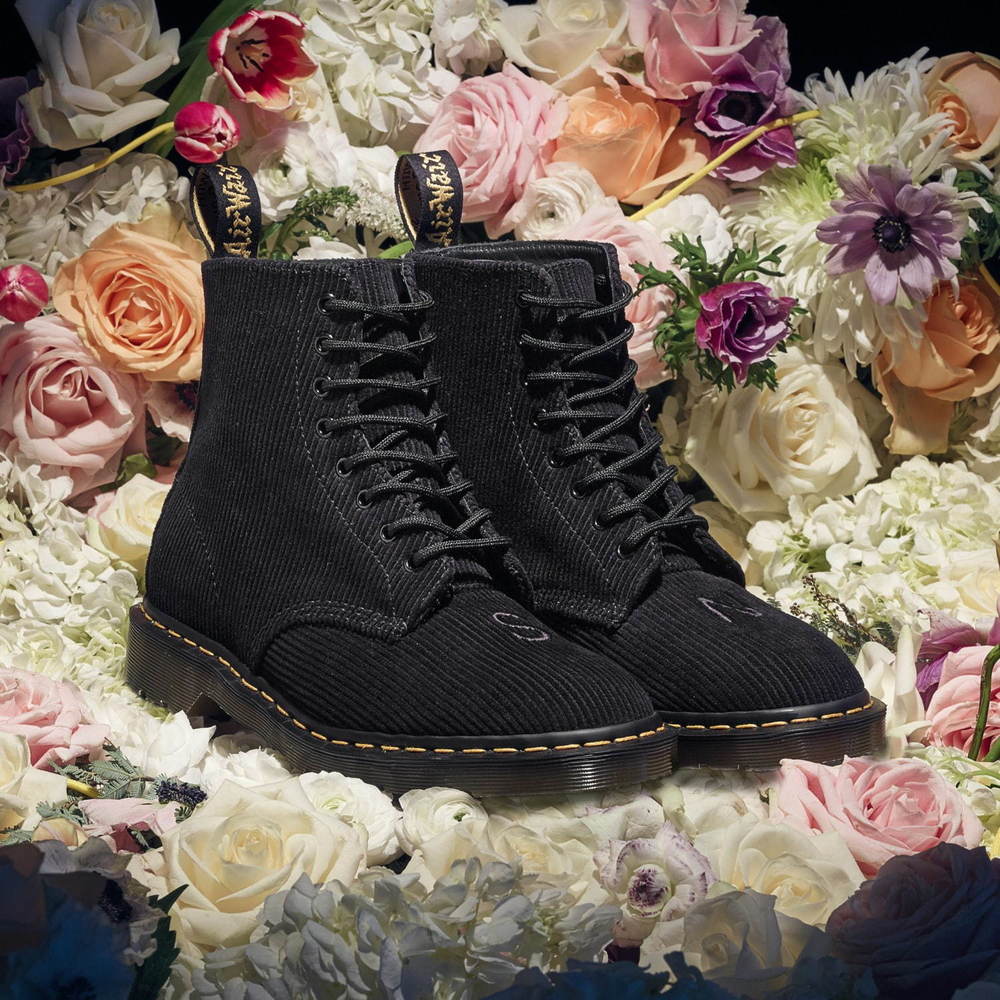 ドクターマーチン×アンダーカバーのブーツ、“花束”モチーフ×刺繍入りコーデュロイアッパー - fashion-press.net/news/60899