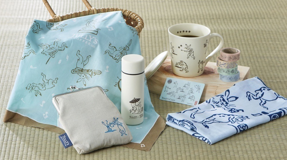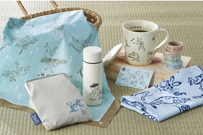 タリーズコーヒー×手ぬぐい専門店「かまわぬ」コラボアイテム、動物を描いた“鳥獣戯画”の手ぬぐいなど - fashion-press.net/news/62609