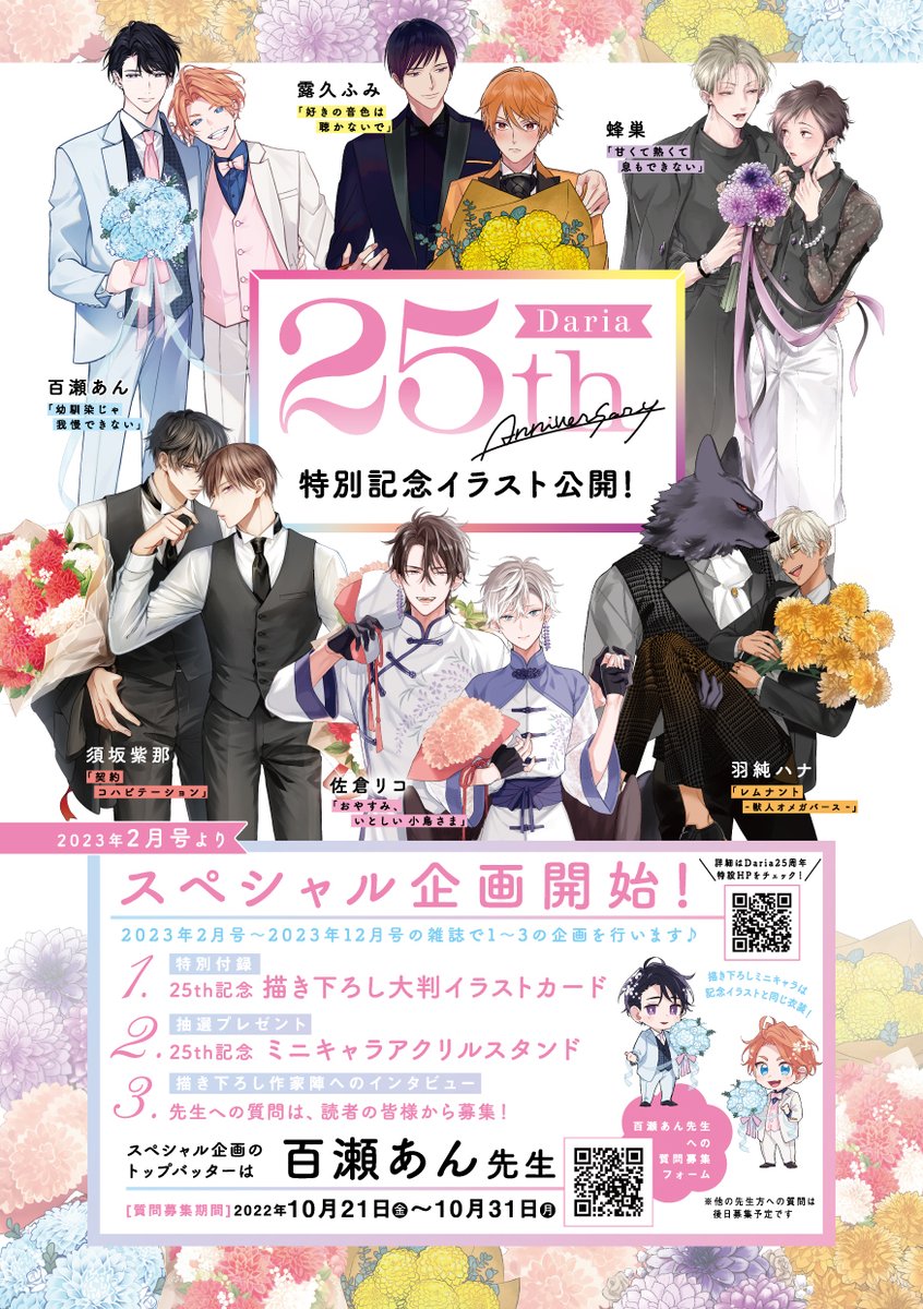 正装に身を包んだ彼らがDariaの創刊25周年をお祝いしてくれました😍💗