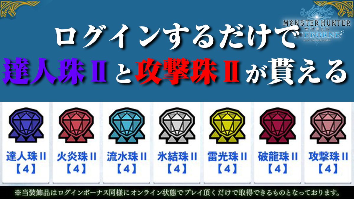 【MHWI】攻撃珠Ⅱと達人珠Ⅱが期間限定で全員配布!アルバトリオン配信記念が熱すぎるから絶対モンハン起動して【モンハンワールド:アイスボーン】 youtu.be/0ZssSrLNo94 @YouTubeより