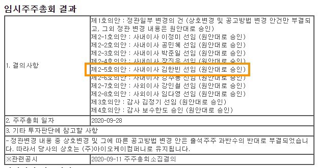 [NEWS] 200928 คิมฮันบิน (นักร้องในสังกัด 131 label) มีรายชื่อในคณะกรรมการบริหารบริษัท ไอโอเค (จำกัด) อย่างเป็นทางการ