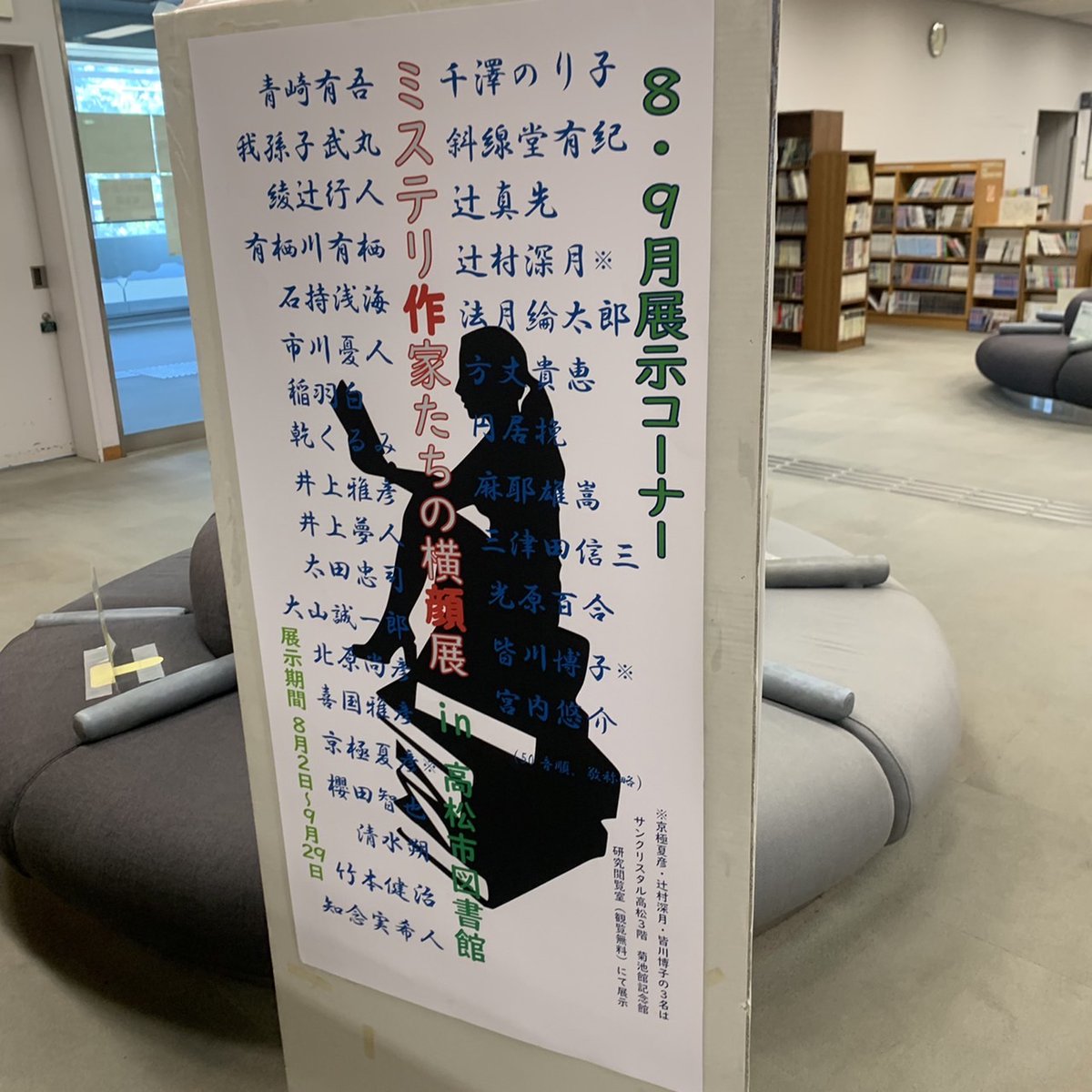 【重要なお知らせ】情報出ました。「ミステリ作家たちの横顔展 in 金沢」@石川県立図書館に伴い、7月16日(日)に有栖川有栖+麻耶雄嵩+僕というメンツでトークショーあり〼。定員140名で、6月20日(火)より受付開始(先着順)。