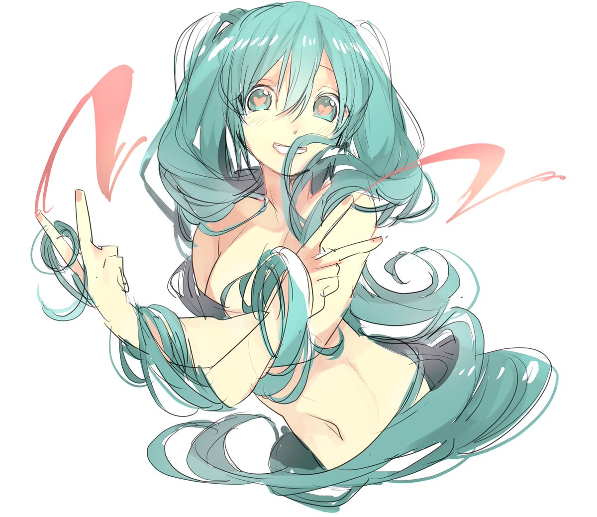 初音ミク10周年イラストコンテストに!💕 ミクちゃんの髪の毛をわたわたさせるのが好きです(っ´ω`c)