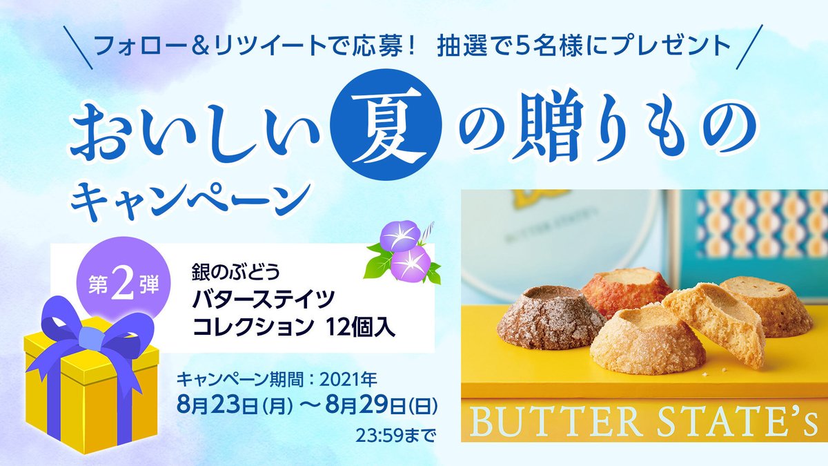 北海道バターのお菓子5種入り「@gin_no_budo のバターステイツコレクション」を抽選で5名に #プレゼント