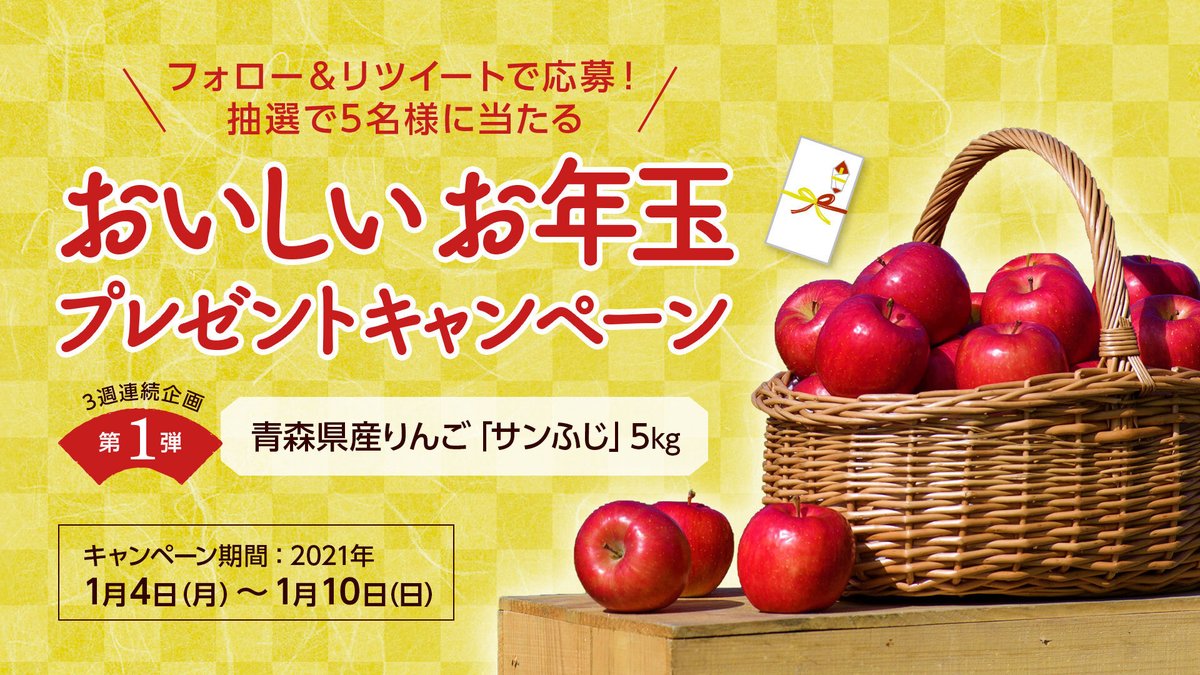 青森県産りんご「サンふじ」5kgを、抽選で5名様にプレゼント🎁