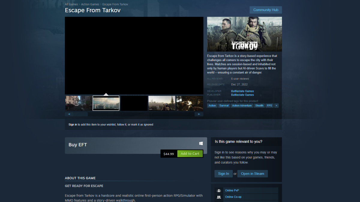 【ニュース】『Escape from Tarkov』の偽Steamストアページが突如出現。そしてマッハに消える