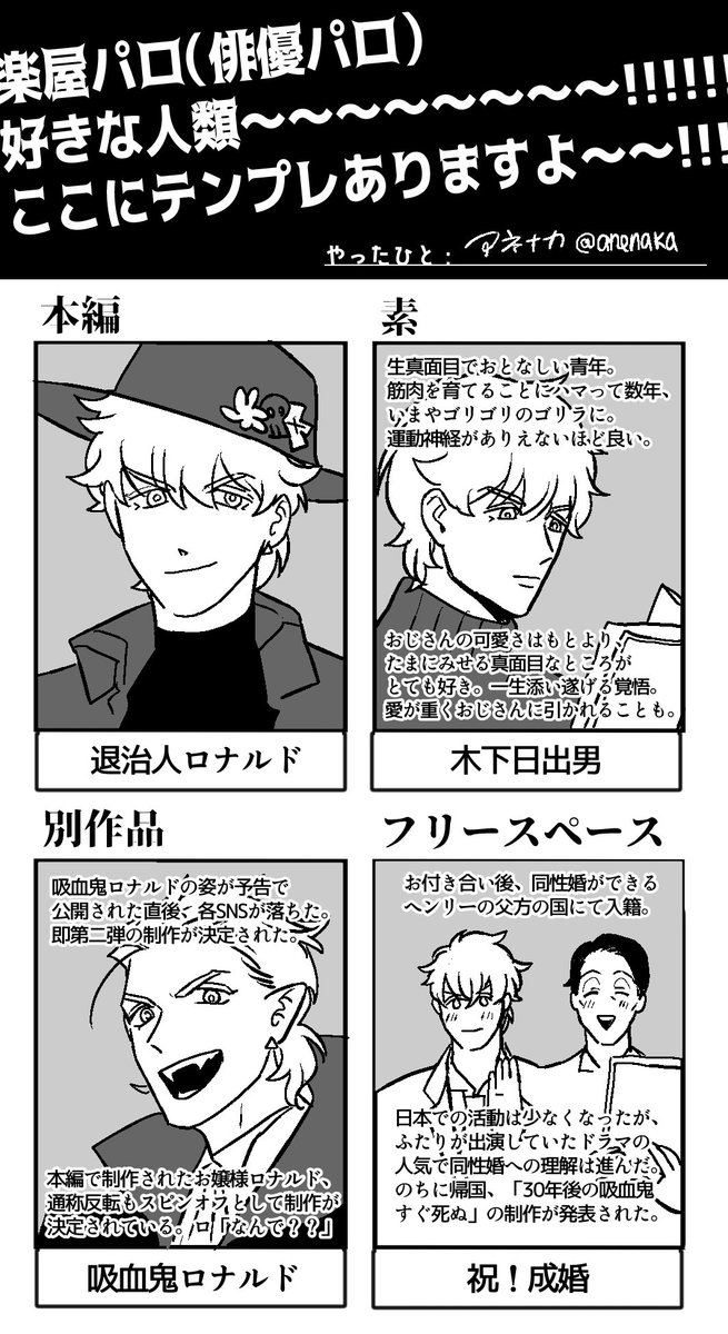 素敵なテンプレをお借りして俳優パロのロドを描きました 細かい、めちゃくちゃ細かい 拡大してみてください……