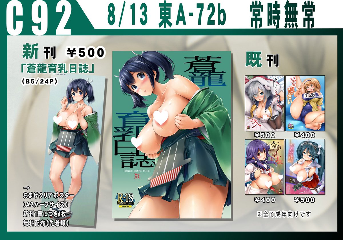 【C92】遅くなりましたが新刊はこんな感じの蒼龍本です。会場ではA2ハーフサイズクリアポスターつき予定なのでよろしくです!消してないサンプルはpixivに→pixiv.net/member_illust.…