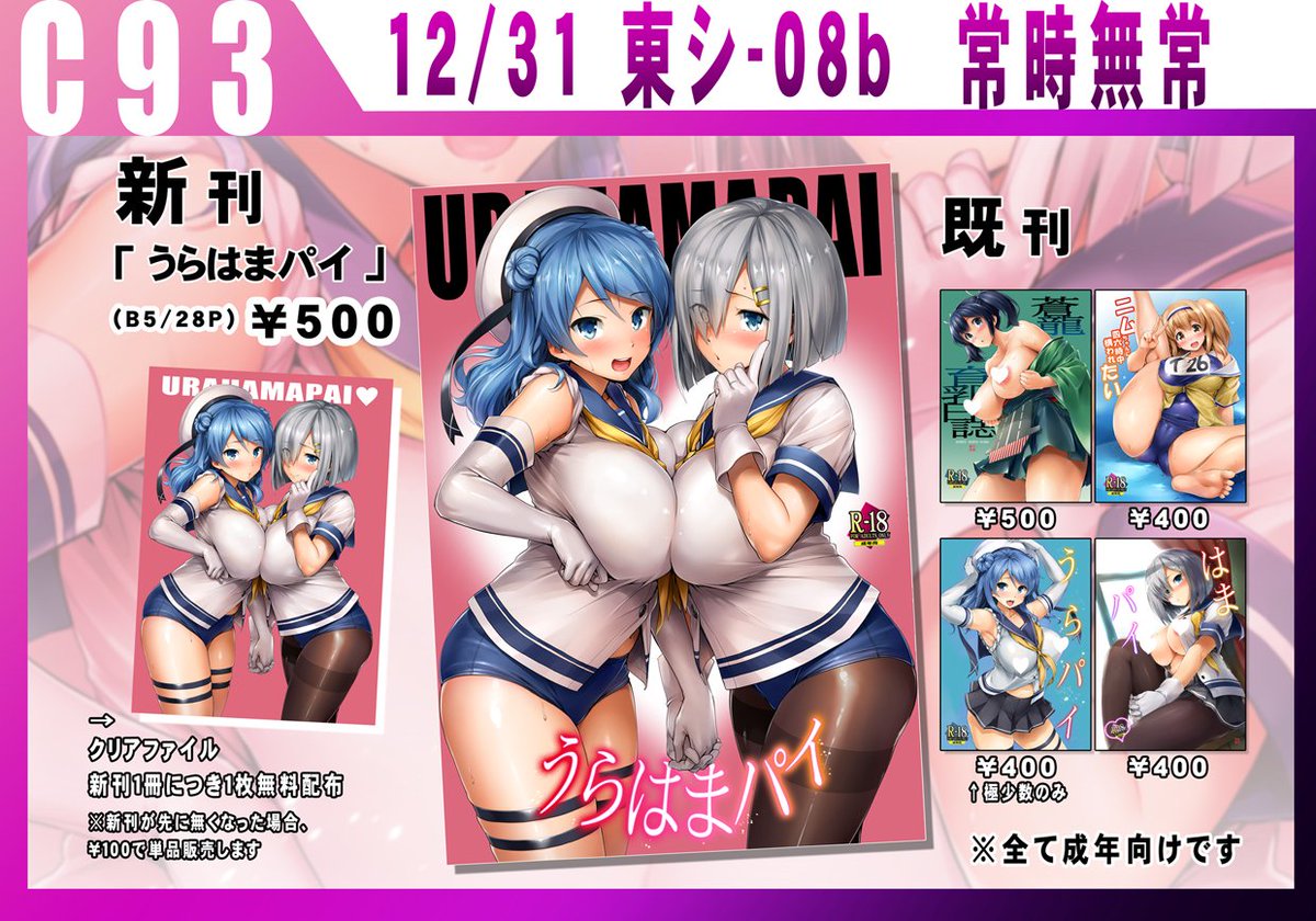 【R18】C93新刊うらはまパイの委託が下記書店様にて始まりました。