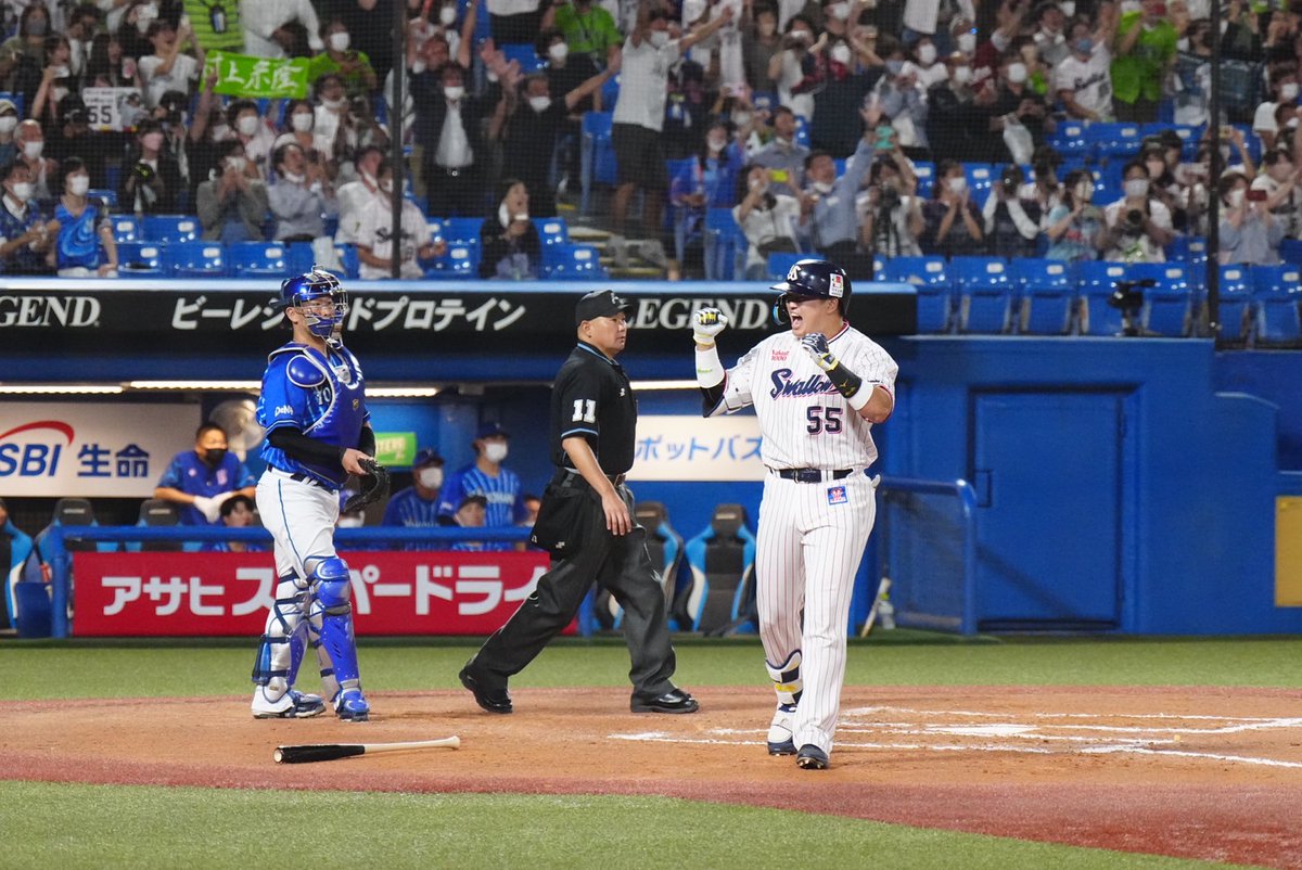 【速報】#ヤクルト 村上宗隆 内野手が神宮球場でのDeNA戦で日本人シーズン最多の56号本塁打を放ちました!